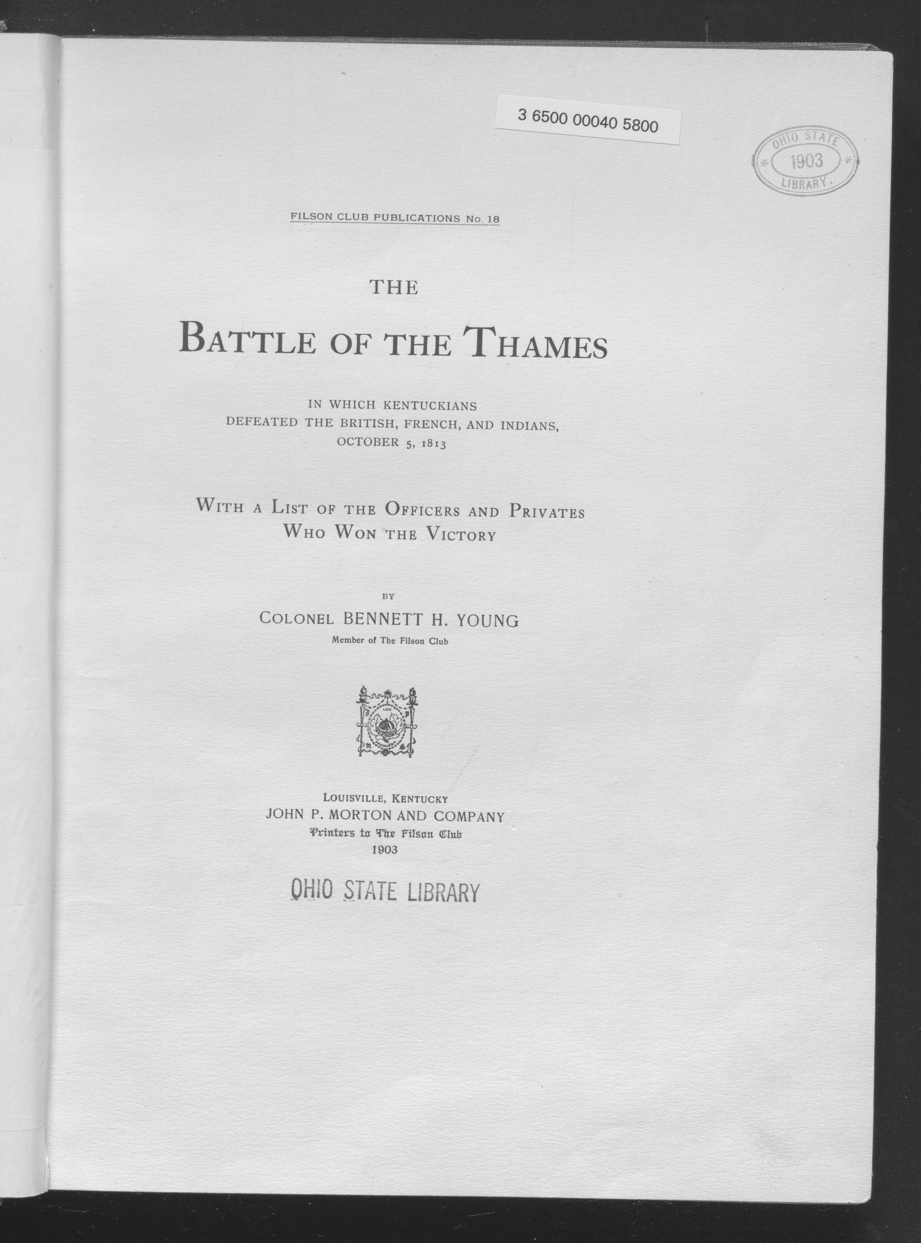 The Battle of the Thames (Young, Col. Bennett H.)