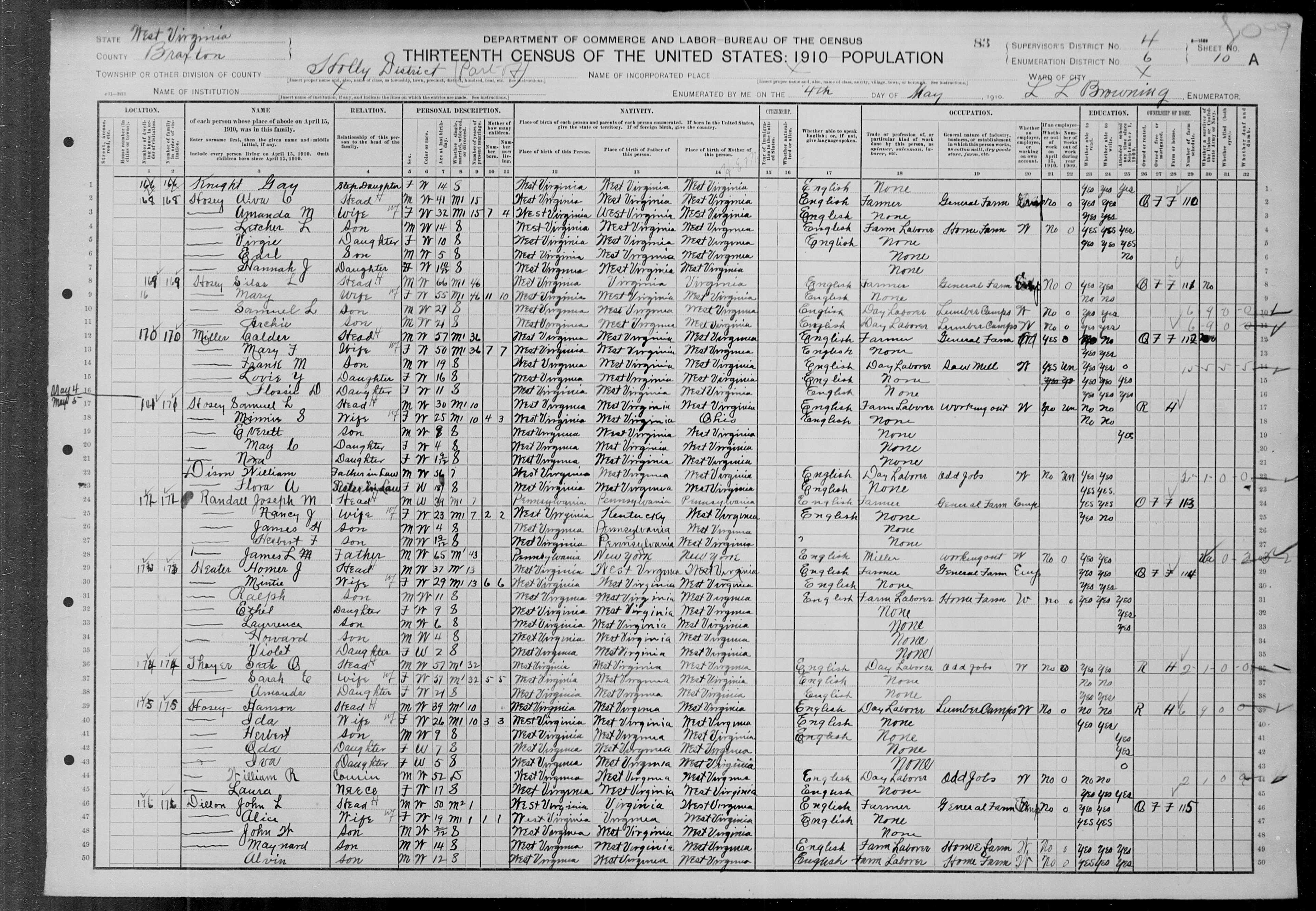 1910 U. S. Census Braxton Co., West Virginia
