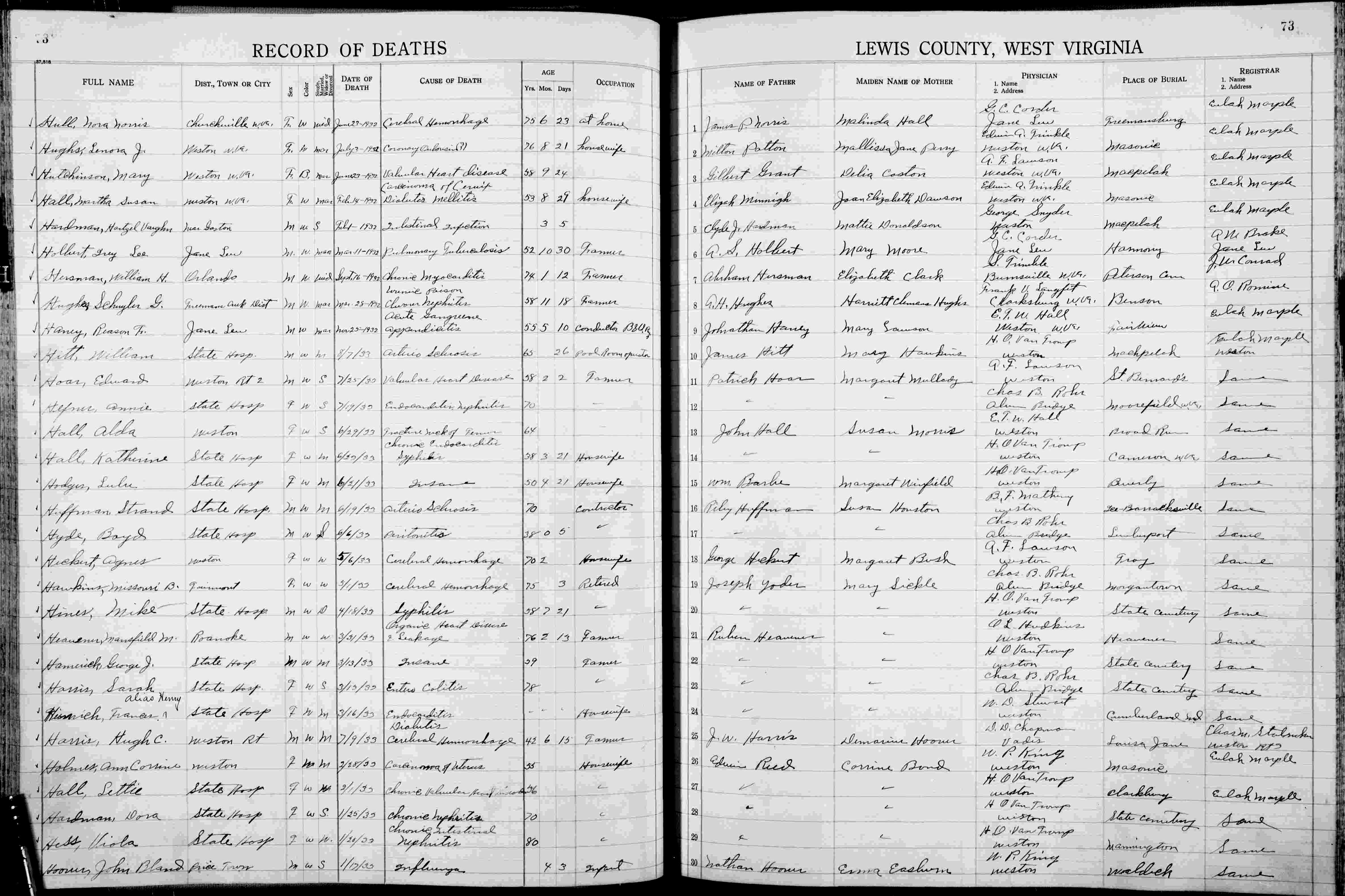 Death Records 1930-1940, Lewis Co., West Virginia