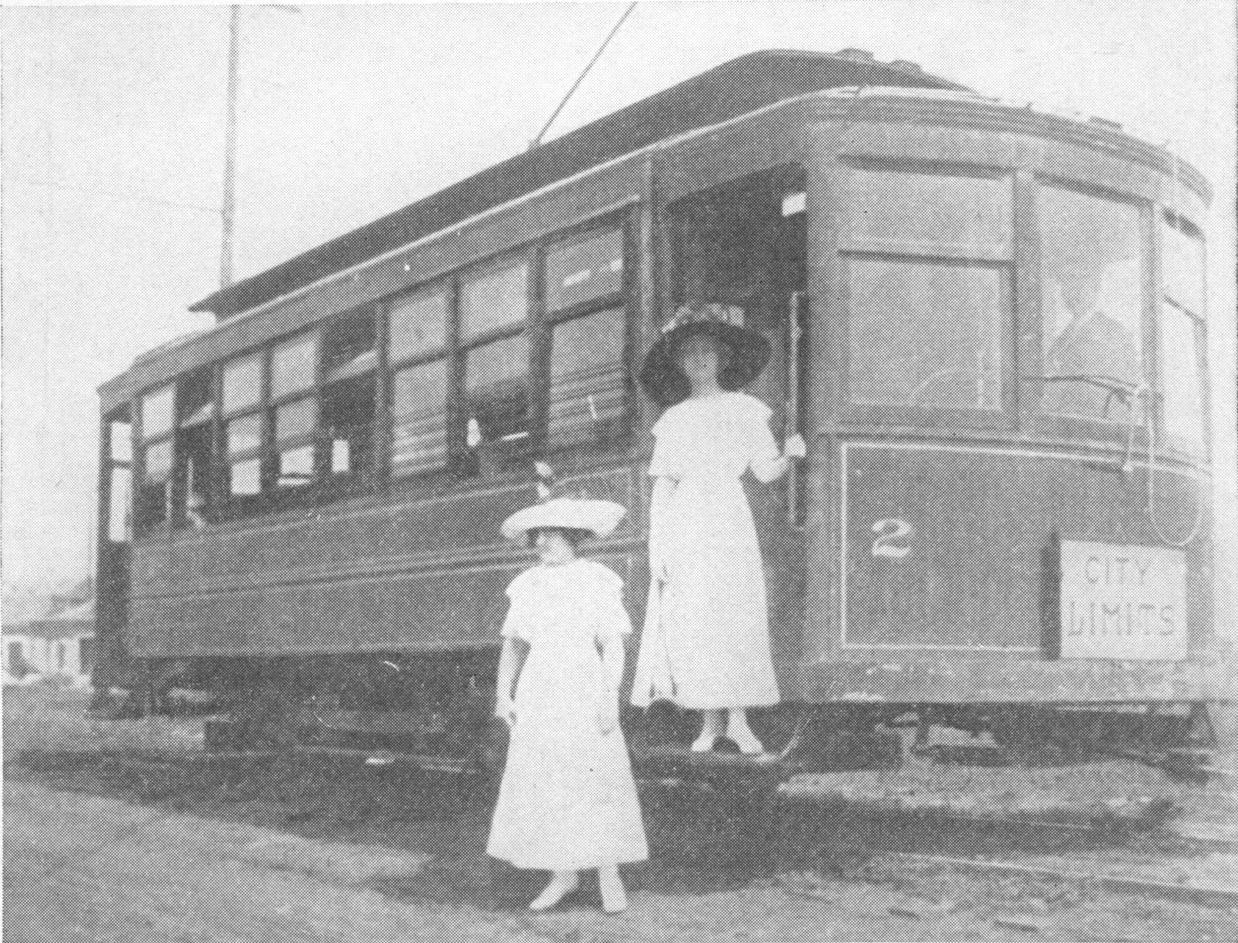 Miss Jennie Roberson and Mrs. Jake Avis as they caught the street car when its terminal was ninth Street and Kemp Boulevard - 1911
